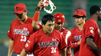 2007 프로야구 LG 트윈스와 KIA 타이거즈의 경기가 15일 잠실야구장에서 벌어져 KIA가 조경환의 4타점과 스코비의 6이닝 무실점 호투로 4-2로 승리를 거두었다. 조경환(가운데) 등 KIA 선수들이 인사하며 경기장을 빠져 나가고 있다./잠실=손용호 기자spjj@osen.co.kr <2007 삼성 PAVV 프로야구> [Copyright ⓒ...