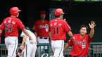 2007 프로야구 LG 트윈스와 KIA 타이거즈의 경기가 15일 잠실야구장에서 벌어졌다. 0-1로 뒤지던 KIA의 4회초 2사 만루서 조경환의 주자일소 2루타 때 홈을 밟은 이현곤과 김원섭을 최희섭이 반갑게 맞이하고 있다./잠실=손용호 기자spjj@osen.co.kr <2007 삼성 PAVV 프로야구> [Copyright ⓒ 한국 최고의 스포츠...