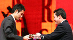 '2007 윈저 어워즈 한국축구대상' 시상식(일간스포츠 주최)이 3일 오후 서울 삼성동 코엑스 오디토리움에서 열렸다. '홍명보 중앙 수비수상'을 수상한 전남 드래곤즈의 강민수가 홍명보 코치로부터 트로피와 꽃다발을 받고 있다. /황세준 기자 storkjoon@osen.co.kr [Copyright ⓒ 한국 최고의 스포츠...