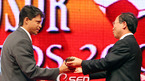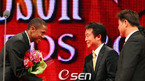 '2007 윈저 어워즈 한국축구대상' 시상식(일간스포츠 주최)이 3일 오후 삼성동 코엑스 오디토리움에서 열렸다. 선수들이 직접 뽑은 공격수상과 올해의 선수상을 수상한 경남의 까보레가 임근재 서울 유나이티드 감독으로부터 트로피와 꽃다발을 받고 있다. /황세준 기자 storkjoon@osen.co.kr [Copyright ⓒ 한국...
