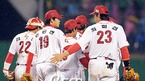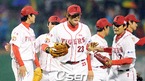 '2009 CJ 마구마구 프로야구' 한화 이글스와 KIA 타이거즈의 경기가 2일 오후 군산 월명야구장에서 벌어져 선발 구톰슨의 호투와 타선의 집중력을 앞세워 한화의 홈런포를 힘겹게 따돌리고 7-5로 승리했다. KIA 선수들이 마운드에 모여 승리를 자축하고 있다./군산=윤민호 기자ymh@osen.co.kr