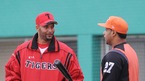 '2009 CJ 마구마구 프로야구' 한화 이글스와 KIA 타이거즈의 경기가 2일 오후 군산 월명야구장에서 벌어졌다. 경기 전 KIA 로페즈와 한화 디아즈가 인사를 나누고 있다./군산=윤민호 기자ymh@osen.co.kr