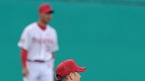 '2009 CJ 마구마구 프로야구' 한화 이글스와 KIA 타이거즈의 경기가 2일 오후 군산 월명야구장에서 벌어졌다. 3초 1사 한화 신경현의 타구 피하다 넘어진 KIA 구톰슨이 마운드에 앉아 있다./군산=윤민호 기자ymh@osen.co.kr