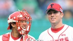 '2009 CJ 마구마구 프로야구' 한화 이글스와 KIA 타이거즈의 경기가 2일 오후 군산 월명야구장에서 벌어졌다. 4회초 이닝을 마무리 지은 KIA 구톰슨이 포수 김상훈과 기뻐하고 있다./군산=윤민호 기자ymh@osen.co.kr
