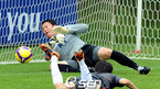 오는 17일 열리는 2010 남아공 월드컵 아시아 최종예선 이란과의 마지막 경기를 앞둔 축구 국가대표팀이 14일 파주 NFC에서 훈련 및 미디어데이 행사를 가졌다. 세트플레이 훈련 중 골키퍼 이운재가 이청용의 헤딩슛을 막아내고 있다./파주=김영민 기자ajyoung@osen.co.kr