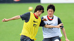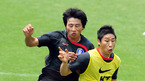 오는 17일 열리는 2010 남아공 월드컵 아시아 최종예선 이란과의 마지막 경기를 앞둔 축구 국가대표팀이 14일 파주 NFC에서 훈련 및 미디어데이 행사를 가졌다. 박지성과 박주영이 압박수비 훈련 중 볼다툼을 벌이고 있다./파주=김영민 기자ajyoung@osen.co.kr