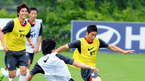 오는 17일 열리는 2010 남아공 월드컵 아시아 최종예선 이란과의 마지막 경기를 앞둔 축구 국가대표팀이 14일 파주 NFC에서 훈련 및 미디어데이 행사를 가졌다. 이근호가 압박수비 훈련 중 김근환에 앞서 볼을 차지하고 있다./파주=김영민 기자ajyoung@osen.co.kr