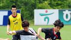 오는 17일 열리는 2010 남아공 월드컵 아시아 최종예선 이란과의 마지막 경기를 앞둔 축구 국가대표팀이 14일 파주 NFC에서 훈련 및 미디어데이 행사를 가졌다. 압박수비 훈련 중 이근호가 점프로 태클을 피하고 있다./파주=김영민 기자ajyoung@osen.co.kr