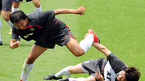 오는 17일 열리는 2010 남아공 월드컵 아시아 최종예선 이란과의 마지막 경기를 앞둔 축구 국가대표팀이 14일 파주 NFC에서 훈련 및 미디어데이 행사를 가졌다. 김정우가 압박수비 훈련을 마치고 조원희와 이마를 맞대고 있다./파주=김영민 기자ajyoung@osen.co.kr