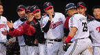'2009 CJ 마구마구 프로야구' LG 트윈스와 SK 와이번스의 경기가 14일 오후 잠실구장에서 벌어졌다. 8회말 첫타석에서 LG 페타지니가 우월 솔로 홈런을 날린 후 덕아웃에서 동료들과 기쁨을 나누고 있다./잠실=민경훈 기자 rumi@osen.co.kr