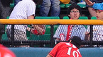 '2009 CJ 마구마구 프로야구' LG 트윈스와 SK 와이번스의 경기가 14일 오후 잠실구장에서 벌어졌다. 8회말 첫타석에서 LG 페타지니가 우월 솔로 홈런 타구를 잡기 위해 SK 조동화가 담을 탔지만 잡아내지 못하고 있다./잠실=민경훈 기자 rumi@osen.co.kr