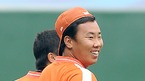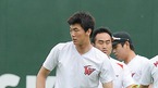 '2009 CJ 마구마구 프로야구' SK 와이번스와 한화 이글스의 경기가 30일 오후 인천문학구장에서 벌어진다. 경기에 앞서 훈련을 하던 한화 이범호가 환한 웃음 짓고 있다./문학=윤민호 기자ymh@osen.co.kr