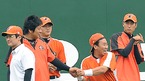 '2009 CJ 마구마구 프로야구' SK 와이번스와 한화 이글스의 경기가 30일 오후 인천문학구장에서 벌어진다. 경기 전 한화 선수들이 훈련을 하고 있는 SK 선수들을 바라보고 있다./문학=윤민호 기자ymh@osen.co.kr