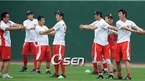 '2009 CJ 마구마구 프로야구' SK 와이번스와 한화 이글스의 경기가 30일 오후 인천문학구장에서 벌어진다. 경기 전 SK 선수들이 반바지를 입고 훈련을 하고 있다./문학=윤민호 기자ymh@osen.co.kr