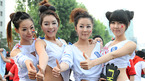 [OSEN=지형준 기자] 2010 남아공 월드컵 B조 조별리그 3차전 한국과 나이지리아 경기가 펼쳐진 23일 오전 서울 삼성동 코엑스 앞 영동대로에서 레이싱모델 붉은악마가 16강 진출이 확정되자 엄지손가락을 치켜들고 있다. /jpnews@osen.co.kr