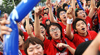 [OSEN=지형준 기자] 2010 남아공 월드컵 B조 조별리그 3차전 한국과 나이지리아 경기가 펼쳐진 23일 오전 서울 삼성동 코엑스 앞 영동대로에서 붉은악마가 16강 진출이 확정되자 환호하고 있다. /jpnews@osen.co.kr