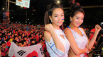 [OSEN=지형준 기자] 2010 남아공 월드컵 B조 조별리그 3차전 한국과 나이지리아 경기가 펼쳐질 23일 오전 서울 삼성동 코엑스 앞 영동대로에서 레이싱 모델이 열띤 응원을 하고 있다. 사상 첫 원정 16강 진출을 노리는 축구 국가대표팀은 나이지리
