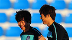 [OSEN=카타르, 민경훈 기자] 조광래 감독이 이끄는 2011 카타르 아시안컵 한국 대표팀이 24일 저녁(한국시간) 오후 카타르 알와크라의 알와크라 스타디움에서 일본과의 4강전을 하루 앞두고 훈련을 가졌다.차두리과 손흥민이 환하게 웃으며 훈련을 하고 있다./rum