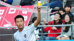 [OSEN=손용호 기자,서울월드컵경기장] 2011 K-리그 6강플레이오프 첫 경기 FC 서울-울산 현대 전반 울산 김신욱이 팀의 두번째 골을 넣고 환호하고 있다. FC 서울과 울산 현대가 19일 오후 3시 서울월드컵경기장에서 K리그 2011 6강 플