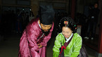 [OSEN=이천, 민경훈 기자] 18일 오후 경기도 이천시 무대마당 스튜디오에서 열린 jTBC 개국 주말 특별기획드라마 '인수대비'의 고사에서 인수대비 역을 맡은 채시라가 고사상으로 걸어나오고 있다. 이 날 촬영 현장 공개에 앞서 드