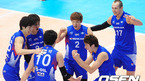 [OSEN=대전 ,백승철 기자] 1일 오후 대전 충무체육관에서 열린 '2011-2012 NH농협 V리그' 남자부 삼성화재와 대한항공의 경기 2세트 대한항공이 득점에 성공하자 선수들이 기뻐하고 있다. 대한항공은 이날 열린 6라운드 경기에서 승점