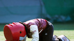 [OSEN=목동, 민경훈 기자] 20일 오후 서울 목동구장에서 열린 넥센 히어로즈와 KIA 타이거즈의 시범경기에서 5회초 경기 시작 전 몸을 풀고 있는 KIA 이종범에게 넥센 턱돌이가 절을 하고 있다. 이 날 넥센에서는 밴헤켄이 선발로