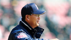 [OSEN=잠실,지형준 기자] 20일 오후 서울 잠실구장에서 두산 베어스와 LG 트윈스의 프로야구 시범경기가 열렸다. 2회초 무사에서 두산 김진욱 감독이 미소를 지으며 판정에 불만을 나타내고 있다. 지난 주말에 열린 개막 2연전서