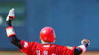 [OSEN=인천,박준형 기자]20일 오후 인천 문학구장에서 열린 SK 와이번스와 삼성 라이온즈의 시범경기 4회초 1사 1루 상황, 삼성 이승엽이 2루타를 날리후 타구를 바라보고 있다. 이날 경기에서 SK는 로페즈를, 삼성은 장원삼을 선발