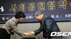 [OSEN=지형준 기자]한국야구위원회와 대한적십자사가 5일 오후 서울 도곡동 야구회관 브리핑룸에서 사회공헌협약식을 가졌다. 대한적십자사 유중근 총재와 한국야구위원회 구본능 총재가 악수를 하며 인사를 나누고 있다. 주