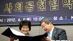 [OSEN=지형준 기자]한국야구위원회와 대한적십자사가 5일 오후 서울 도곡동 야구회관 브리핑룸에서 사회공헌협약식을 가졌다. 대한적십자사 유중근 총재와 한국야구위원회 구본능 총재가 협약서에 사인을 하고 교환하고 있다.