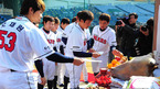 [OSEN=잠실,박준형 기자] 5일 오전 서울 잠실구장에서 두산 베어스의 2012시즌 우승 및 안전 기원제에서 두산 선수들이 고사를 지내고 있다. 이날 고사는 올 시즌 개막을 앞두고 김승영 사장을 비롯해 김진욱 감독과 전 선수단, 임