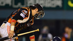 [OSEN=잠실,박준형 기자] 27일 오후 서울 잠실구장에서 열린 2012 팔도 프로야구 두산 베어스와 롯데 자이언츠의 경기 8회말 2사 2루 두산 김현수가 롯데 이명우의 몸쪽 가까운 공에 급히 피하며 쓰러졌다. 강민호 포수가 김현수 유