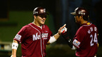 [OSEN=대전, 이대선 기자] 29일 오후 대전 한밭야구장에서 열린 '2012 팔도 프로야구' 한화 이글스와 넥센 히어로즈의 경기, 5회초 1사 2루 넥센 강정호가 좌전 적시타를 치고 달리고 있다. 한화는 외국인 우완 파이어볼러 데니 바티