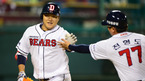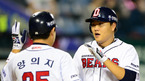 [OSEN=잠실,지형준 기자] 5일 오후 서울 잠실구장에서 열린 '2012 팔도 프로야구' 두산 베어스와 넥센 히어로즈의 경기, 2회말 1사 1루에서 두산 오재일이 역전 투런포를 날리고 양의지와 하이파이브를 하고 있다. 이날 두산은 맏형