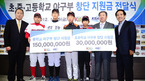 [OSEN= 곽영래 기자] 5일 서울 도곡동 야구회관에서 진행된 '초·중·고등학교 야구부 창단 지원금 전달식'에서 KBO 구본능 총재와 KBA 강승규 회장, 김인식 초중고교 창단추진위원회 위원장과 학생들이 지원금 판넬을 들고 포토타