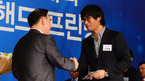 [OSEN=지형준 기자] 국민체육진흥공단이 5일 오전 서울 송파구 방이동 올림픽파크텔 올림피아홀에서 런던올림픽 입상자에 대한 연금증서 수여식을 개최했다. 런던올림픽 축구대표팀 김태영 코치가 정정택 국민체육진흥공단 이