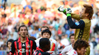 [OSEN=서울월드컵경기장, 이대선 기자] 7일 오후 서울월드컵경기장에서 열린 '현대오일뱅크 K리그 2012' 35라운드 FC 서울과 경남 FC의 경기, 전반 경남 김병지가 서울의 코너킥을 펀칭으로 막아내고 있다. 서로 중요한 길목에서 만