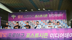 [OSEN=잠실, 민경훈 기자] 7일 오후 서울 잠실구장에서 진행된 2012 팔도프로야구 준플레이오프 미디어데이에서 두산 김진욱 감독이 출사표를 던지고 있다. 이날 미디어데이에는 두산 김진욱과 롯데 양승호 감독이 참석해 1차전