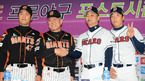 [OSEN=잠실, 민경훈 기자] 7일 오후 서울 잠실구장에서 진행된 2012 팔도프로야구 준플레이오프 미디어데이에서 롯데 손아섭 강민호 양승호 감독, 두산 김진욱 감독 김현수 이용찬이 포토타임을 갖고 있다. 이날 미디어데이에는