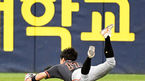 [OSEN=잠실, 지형준 기자] 8일 오후 서울 잠실야구장에서 ‘2021 신한은행 SOL KBO리그’ LG 트윈스와 한화 이글스의 경기가 열렸다.3회말 무사에서 한화 노수광이 LG 정주현의 중견수 플라이 타구를 다이빙 캐치하고 있다. /jpnew
