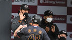 [OSEN=잠실, 지형준 기자] 8일 오후 서울 잠실야구장에서 ‘2021 신한은행 SOL KBO리그’ LG 트윈스와 한화 이글스의 경기가 열렸다.3회초 1사 3루에서 한화 정은원이 득점에 성공하며 수베로 감독과 하이파이브를 하고 있다. /jpn