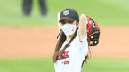 [OSEN=수원, 김성락 기자] 8일 오후 경기도 수원시 수원kt위즈파크에서 ‘2021 신한은행 SOL KBO 리그’ KT 위즈와 NC 다이노스의 경기가 열렸다.경기에 앞서 가수 지숙이 시구를 하고 있다./ksl0919@osen.co.kr