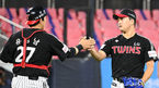 [OSEN=수원, 민경훈 기자] 25일 오후 경기도 수원시 수원kt위즈파크에서 ‘2021 신한은행 SOL KBO 리그’ KT 위즈와 LG 트윈스의 경기가 열렸다.이 날 경기에서 양 팀은 0-0 무승부를 기록했다.경기를 마치고 LG 고우석이 유강남과