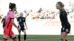 [OSEN=고양, 조은정 기자] 콜린 벨 감독이 이끄는 대한민국 여자대표팀은 27일 오후 2시 고양종합운동장에서 열린뉴질랜드와의 평가전에서 2-1로역전 승을 거뒀다.후반 최유리와 뉴질랜드 선수가 신경전을 벌이고 있다. 2021.11.27 /ce