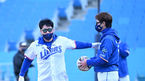 [OSEN=대구, 이대선 기자] 27일 오후 대구삼성라이온즈파크에서 삼성 라이온즈 2021 발로차 러브 데이’가 열렸다.벤치클리어링 때 마운드에서 만난 우규민과 오승환이 포옹을 하고 있다. 2021.11.27 /sunday@osen.co.kr