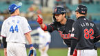 [OSEN=대구, 이석우 기자] 22일 대구 삼성라이온즈파크에서 ‘2022 신한은행 SOL KBO리그’ 삼성 라이온즈와 롯데 자이언츠의 경기가 열렸다.롯데 자이언츠 이학주가 7회초 안타를 치고 세리머니를 하고 있다. 2022.04.22 / foto0307@o