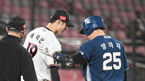 [OSEN=수원,박준형 기자] 22일 오후 수원KT위즈파크에서 '2022 신한은행 SOL KBO리그' KT 위즈와 NC 다이노스의 경기가 진행됐다.6회초 무사 1루 NC 양의지가 자신의 타구에 맞은 KT 배제성 선발투수에게 다가가 미안함을 표시하고 있다. 2