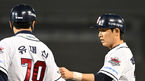 [OSEN=잠실, 이대선 기자] 22일 오후 서울 잠실구장에서 2022 신한은행 SOL KBO리그 두산 베어스와 LG 트윈스의 경기가 열렸다.3회초 2사 만루에서 LG 유강남의 중전 2타점 적시타 때 홈을 밟은 김현수와 홍창기가 더그아웃에서 동료들