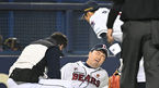 [OSEN=잠실, 이대선 기자] 22일 오후 서울 잠실구장에서 2022 신한은행 SOL KBO리그 두산 베어스와 LG 트윈스의 경기가 열렸다.3회초 1사 1,2루에서 LG 루이즈의 타구에 맞은 두산 이영하가 고통스러워하고 있다. 2022.04.22 /sunday@osen.co.kr