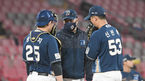 [OSEN=수원,박준형 기자] 22일 오후 수원KT위즈파크에서 '2022 신한은행 SOL KBO리그' KT 위즈와 NC 다이노스의 경기가 진행됐다.2회말 1사 1루 KT 심우준의 기습번트안타를 허용한 NC 신민혁 선발투수가 손민한 투수 코치와 이야기를 나